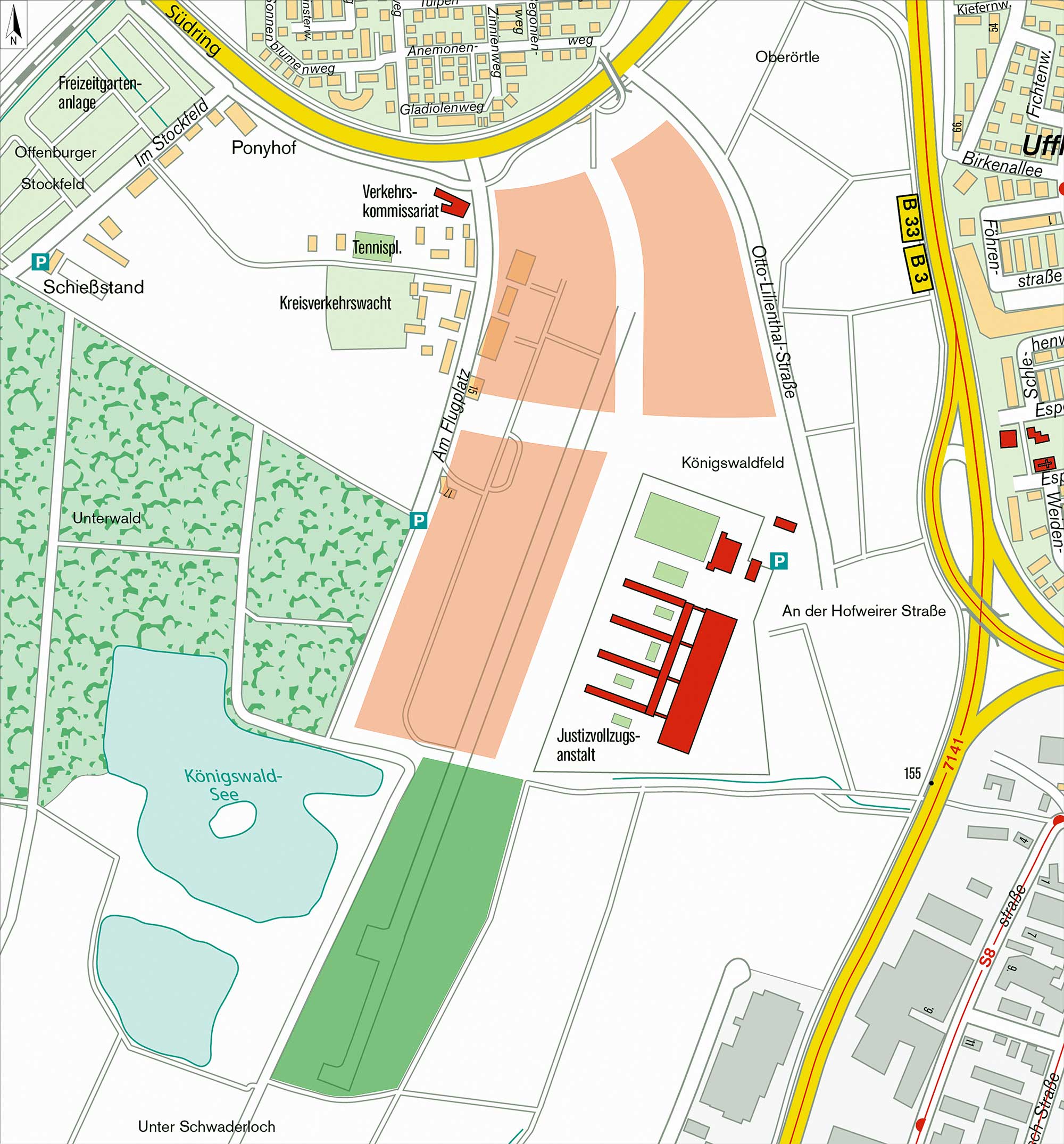 Auf dem Flugplatz und angrenzenden Flächen im Südwesten von Offenburg im Gewann Königswaldfeld soll ein Gewerbegebiet entstehen. Konkret geht es um Flächen zwischen dem Südring, der Straße Am Flugplatz, der Justizvollzugsanstalt und der Otto-Lilienthal-Straße.